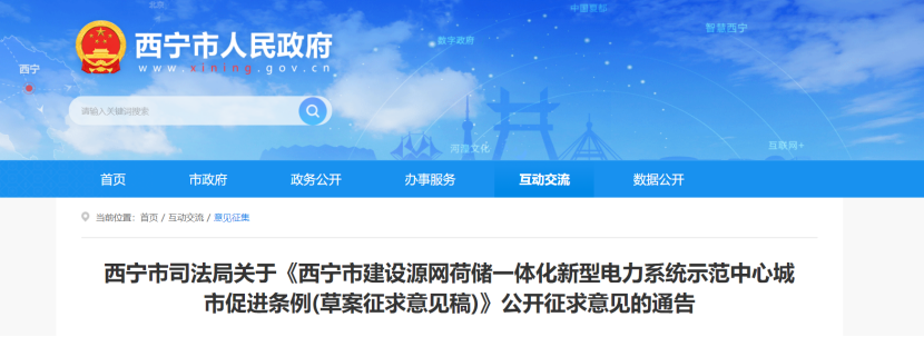 6月27日,青海西寧市司法局發(fā)布關(guān)于《西寧市建設(shè)源網(wǎng)荷儲一體化新型電力系統(tǒng)示范中心城市促進(jìn)條例(草案征求意見稿)》公開征求意見的通告。