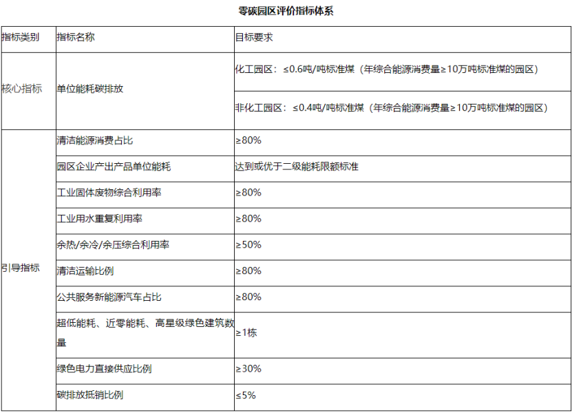 核心指標:零碳園區(qū)建設(shè)必須達到的目標,是園區(qū)驗收評估的首要條件。達不到核心指標要求的園區(qū),原則上不得申請驗收。