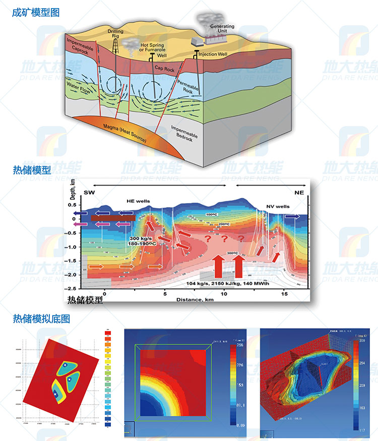 ⑤根據(jù)地質、地球物理、地球化學、錄井、試井等資料,建立熱儲模型,預測熱儲開采動態(tài)及開發(fā)時期可能獲得的產(chǎn)量,熱田地質環(huán)境變化,最終建立地熱田開發(fā)利用的優(yōu)化管理模型。