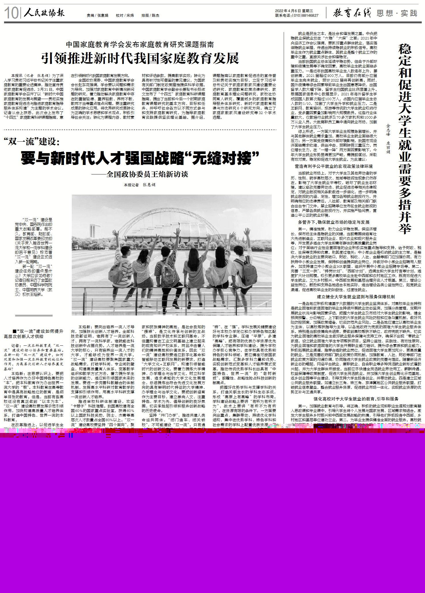 王焰新:在思想認識上,要把人才培養(yǎng)作為辦好中國特色高校的“本”,把本科教育作為辦出世界一流大學的“根”。本科教育在高等教育中是具有戰(zhàn)略地位的教育、是綱舉目張的教育。但是,當前有些高校還沒有真正做到“以本為本”?!半p一流”建設高校要發(fā)揮示范引領作用,加快構建高質量人才培養(yǎng)體系,打造中國特色、世界一流的本科教育。