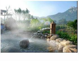 河南省欒川九龍山溫泉風(fēng)景 九龍山溫泉泉水恒溫69.5℃,時流量56噸,水中富含鉀、鎂、鈣、鍶、鋰等27種礦物質(zhì),微含惰性氣體氡和放射性元素鐳,對風(fēng)濕、類風(fēng)濕、心腦血管病后遺癥及婦科、皮膚科常見病的浴療效果顯著,被譽為中原第一泉。