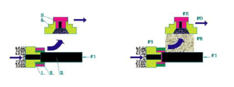 (圖2:物料輸送至工作閥口) (圖3:物料通過均質閥)
